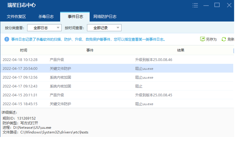 麻烦帮忙把瑞星数据目录下的rsuser.db文件传过来,工程师需要看看