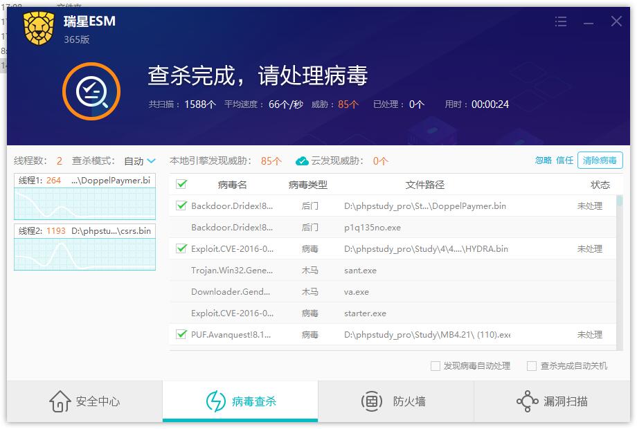 八十多个样本,解压时瑞星一个也没有报警;倒是扫描时发现样本数挺多的, 还有我把样本和瑞星日志放在网盘了