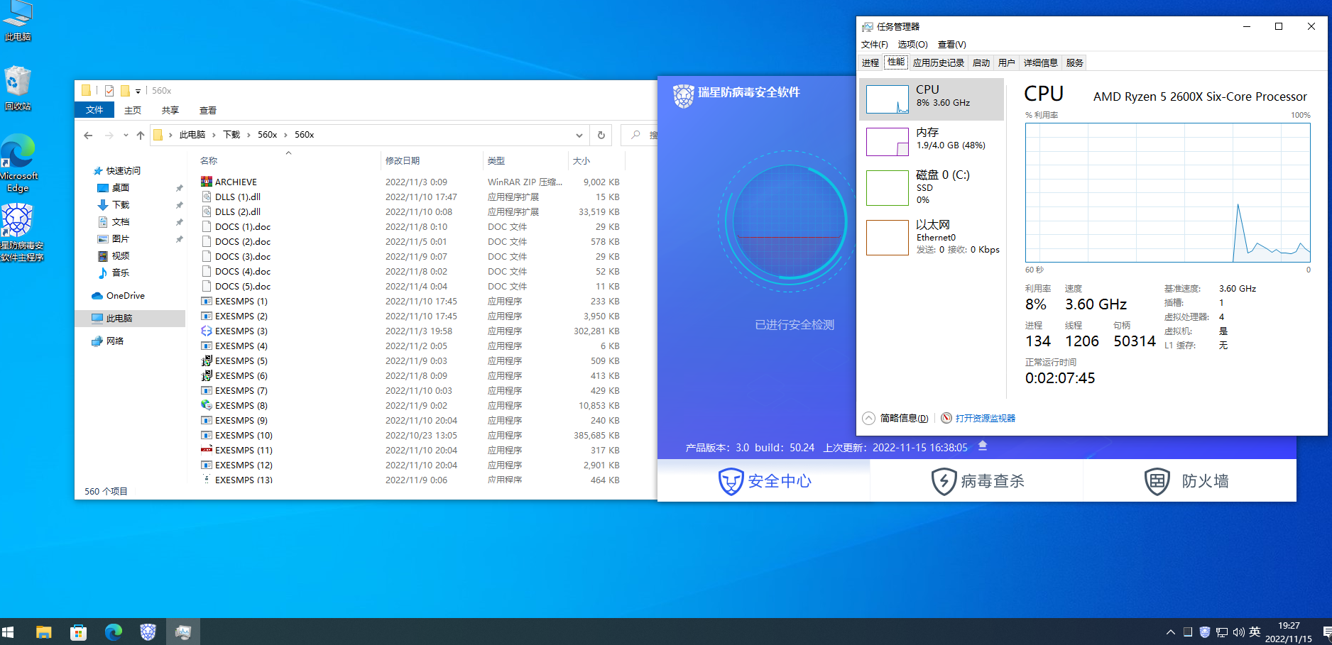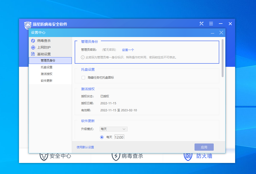 个人兴趣用户测试,可能有不严谨的地方,大家多多包涵。新品瑞星,整体UI看起来还是很舒服的。一目了然。使用的是默认设置,win10系统,补丁齐全。