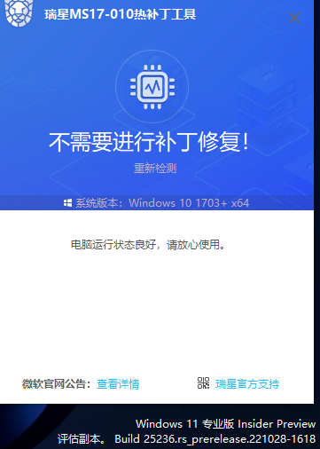 收到 将记录为热补丁工具对win11系统的识别问题