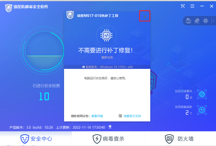 首页 » 个人产品讨论区 » 瑞星防病毒安全软件 » 热补丁工具窗口