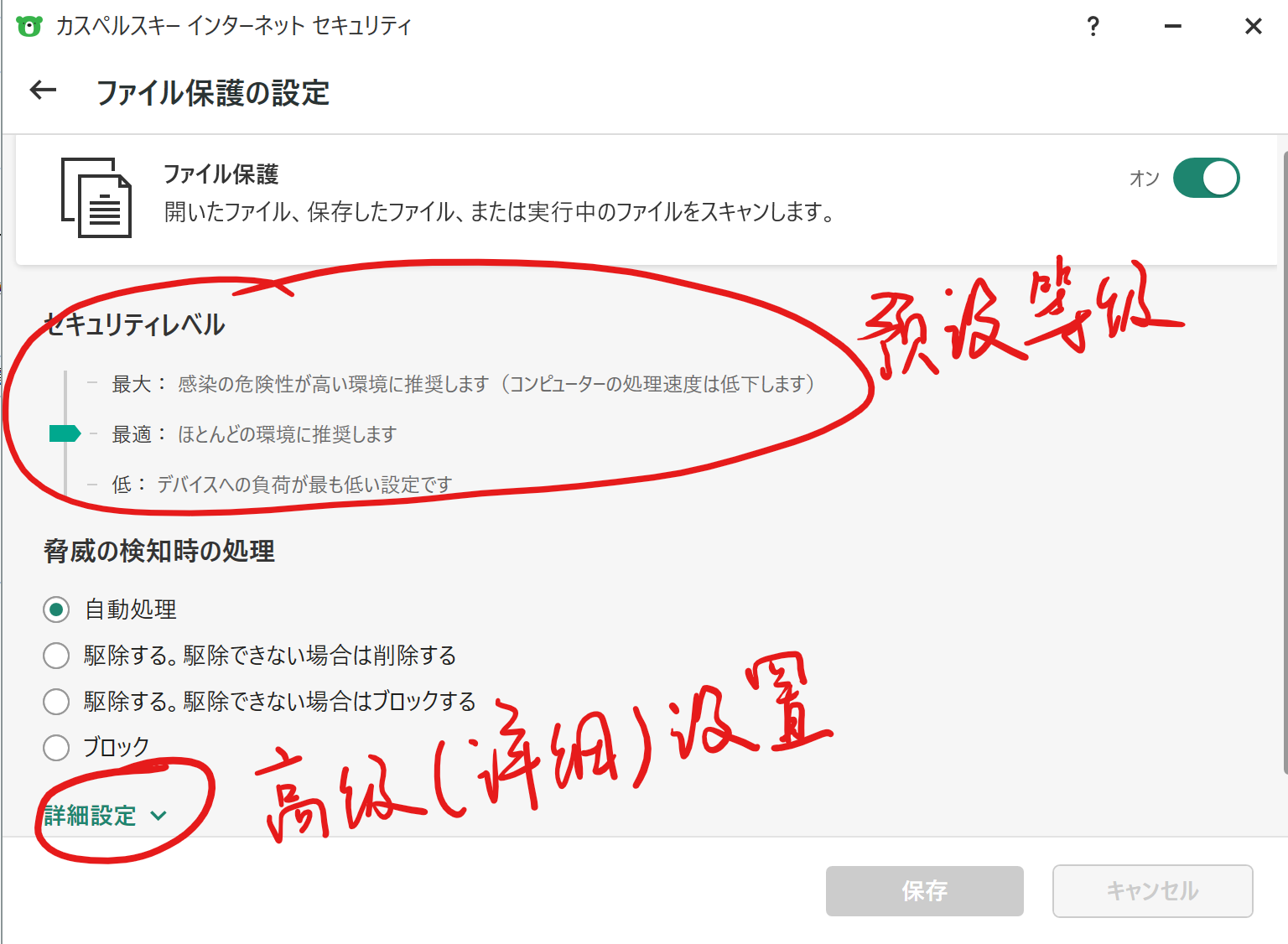 参考卡巴斯基,虽然卡巴斯基也提供了非常多的供专业用户使用的高级设置,但是每一项设置中都是一开始只放出高中低的滑块,然后再单独给一个详细设置的入口。