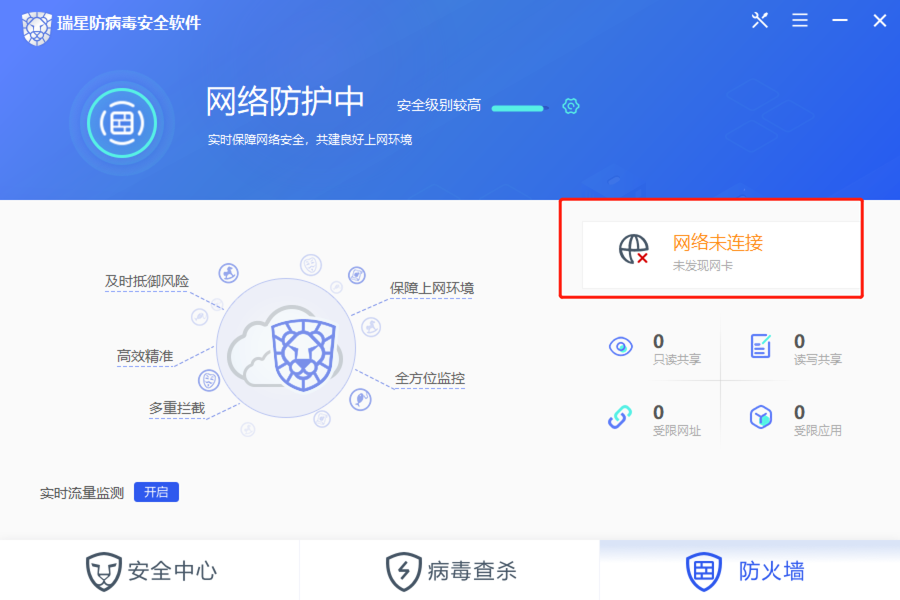 因为经常要切换网络,断网后防火墙提示,未发现网卡。:kaka6:容易造成歧义,文字建议修改下,改为未发现网络,或直接删除下面那行字,只保留网络未连接即可。