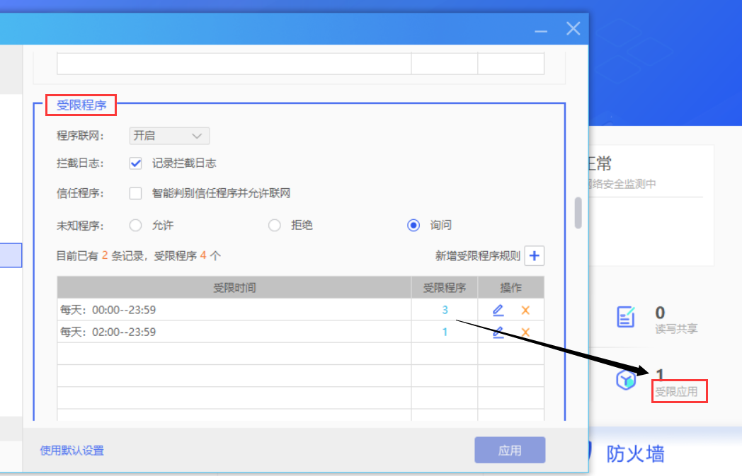 1.受限应用那里的数字应该是规则里的程序数量吧,现在显示的是时间段的数量,而且在设置中心添加完主界面的数字没变化,重新打开主界面才生效。