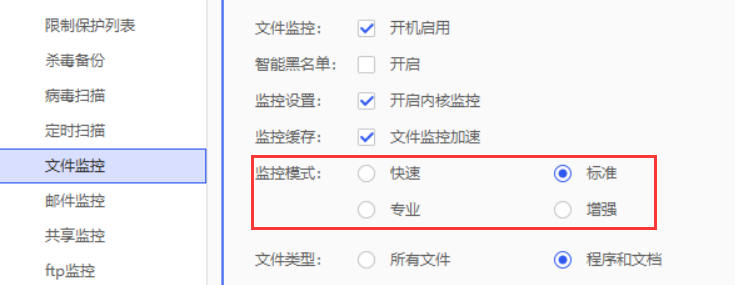 3.监控模式无法选择增强,应用后再打开就变成标准了