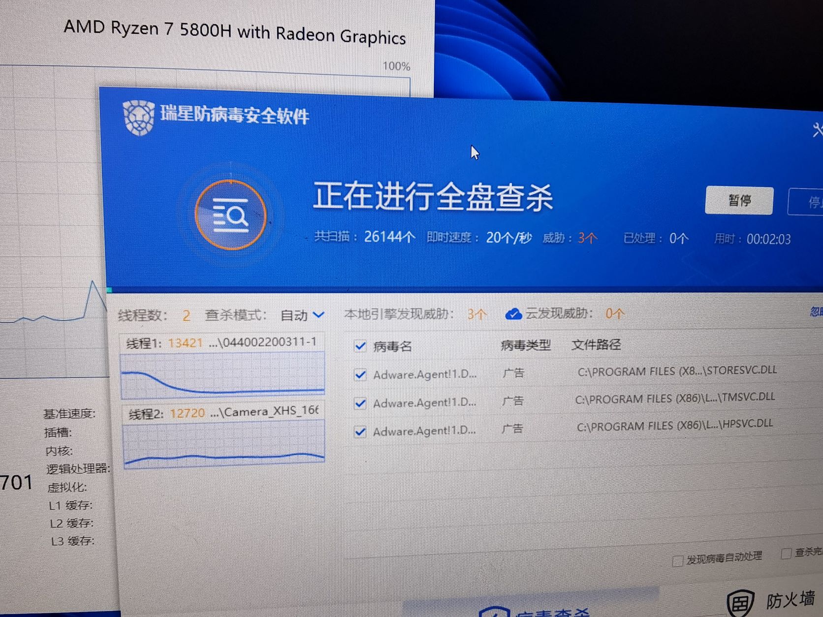 碰到单反的RAW格式文件和CAD的文件就减速了,没看到扫描文件有400/s过,在11系统下扫个文件1292360个居然用了3小时,10系统下2174067个文件用了用了4小时,也显示成用时41分钟,日志记录不太准,在8.1系统下更新和安装是很慢的,扫描日志里时间显示不准,出现了用时-1,每次更新病毒库后FTP监控是自己关闭。明显11系统的优化支持做的还不太行或者说AMD多核优化做的还不行。当友商的云引擎,AI引擎做的火热是,瑞星的真的落后了好多啊,起不到加速。UI中可以像V17一样把引擎辨识出来的,这个界面我都不知道我本地引擎开了那些引擎,有没有漏开的,引擎是模块化的话有没有引导用户开启全部引擎。在11系统要多优化下,安装后明显感觉有点卡顿了,而且风扇时不时就加大散热,没安装瑞星时不会这样。全盘扫描时还是要调整下。暂时先这些,我再继续用用,还有安装后笔记本电池出现明显不耐用的情况,是后台时不时在扫描吗?