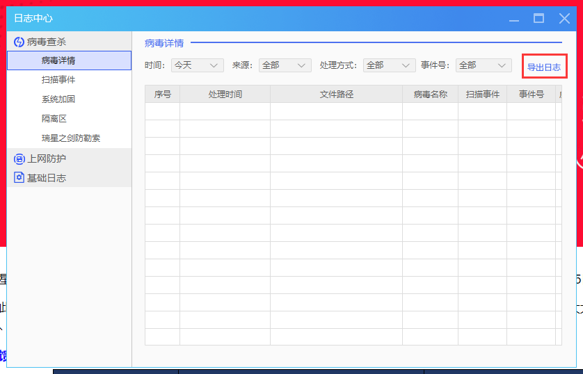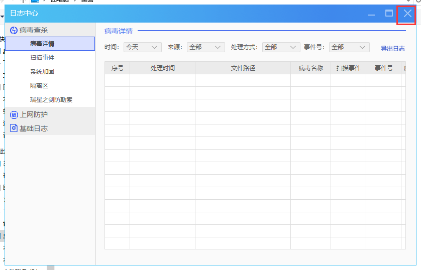2、这时把日志中心关闭,会在桌面生成病毒详情日志文件,但是这个文件没有后缀名,无法打开。同时,另存为的对话框并不会关闭。