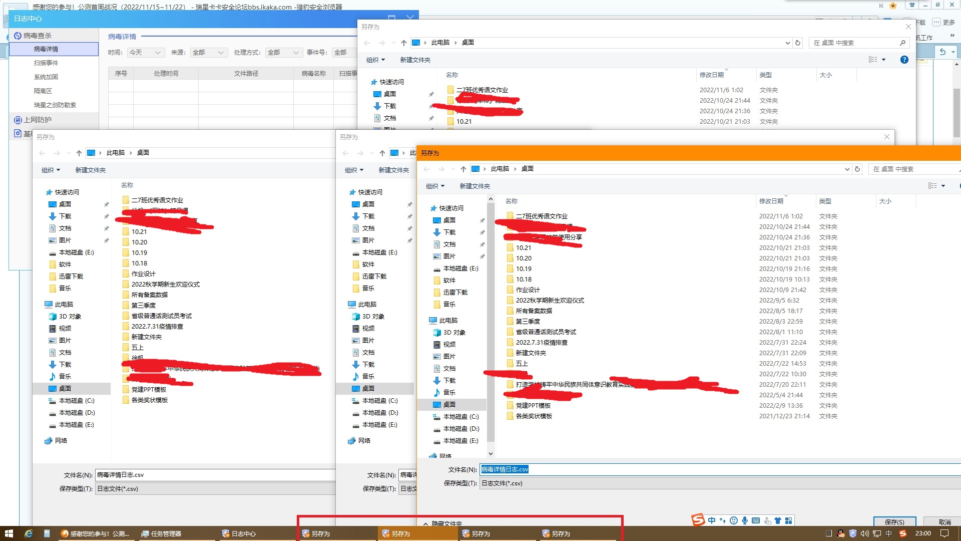 1、打开日志中心,点击导出日志按钮,这时弹出另存为的对话框。(多点几个,就弹几个对话框,没有设置只允许运行一个实例,见图2:kaka6: )