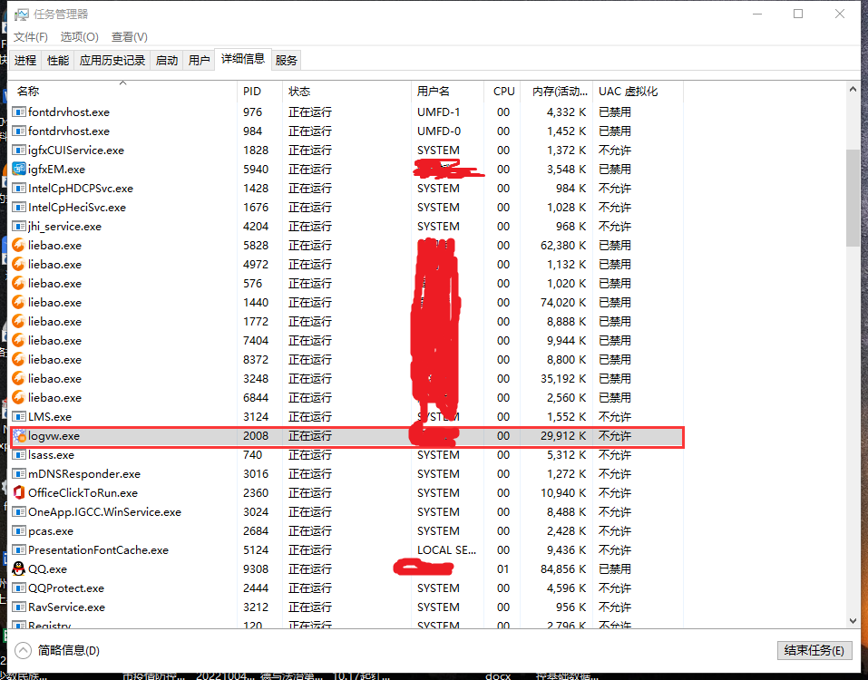 3、这个时候虽然日志中心已经关闭,但是进程中还存在。再点打开日志中心,就没反应了,必须结束进程后才能再次打开。