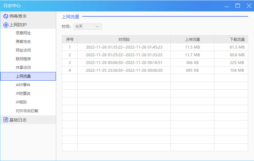 除了上网流量外,其它日志是不是都无效?至少联网程序和网址访问,不应该是空白