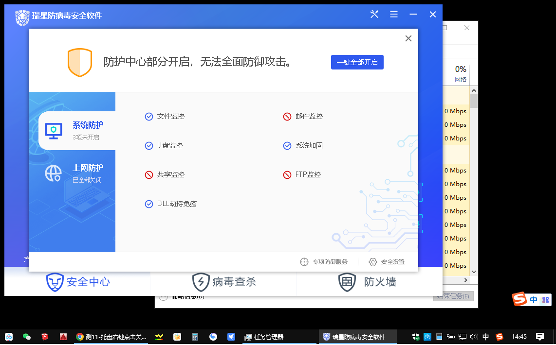 诱发流程: 1.右键退出瑞星监控,确认后台没有任何瑞星进程