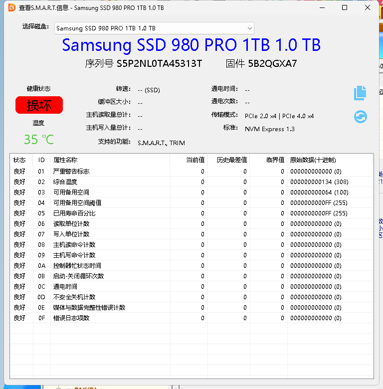 然后新硬盘到了之后,将蒲科特的大约有六百多G数据转移到了新硬盘,然后偶然发现蒲科特硬盘存在坏块30多,有10多G数据无法读取(数据是旧的,可用的,近期没有进行重复删除写入操作过)。