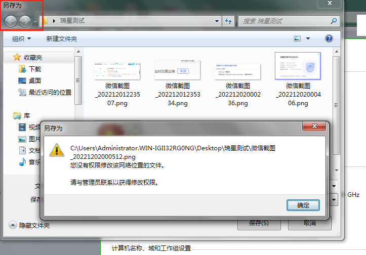 然后微信截图,选择另存为到上面规则文件夹下,提示没有权限,不是限制执行和删除么?