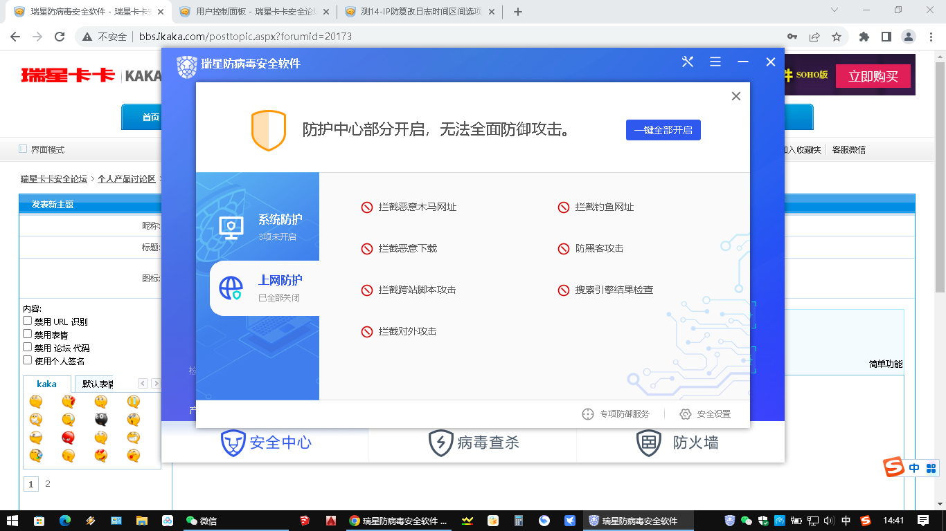 另,1楼执行完的环境,系统防护的单个按钮,都无效,可以点击,但无法开启。