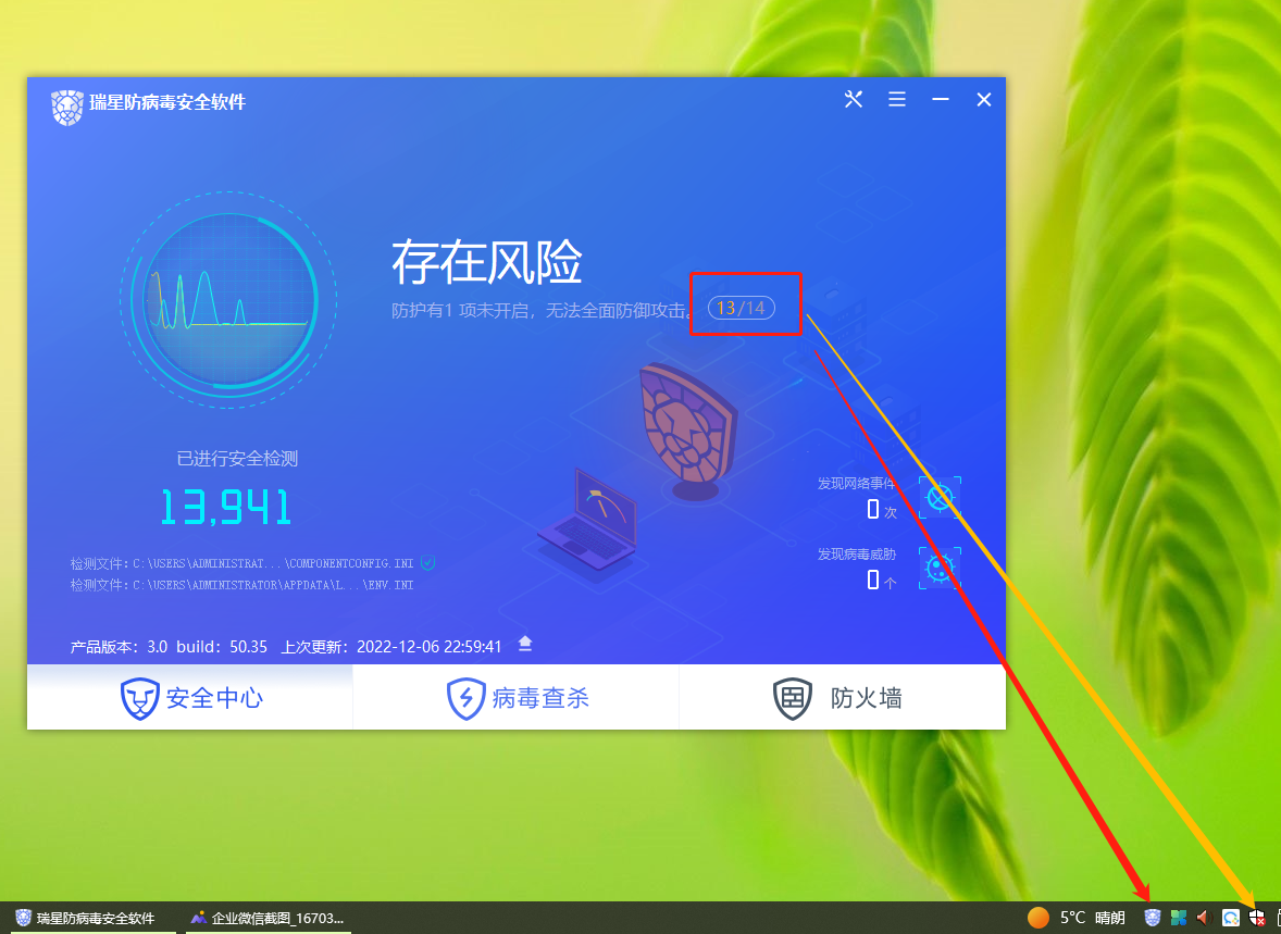 防护中心没全开启的情况下,左下交标没有提示变化,没有弹窗预警提示,建议如同像Windows安全提示中心一样加一组图标