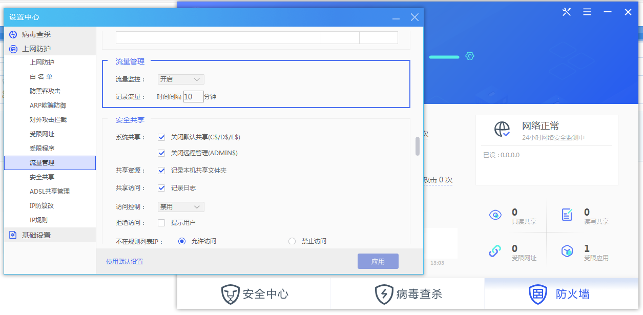 弹出设置中心界面流量管理。