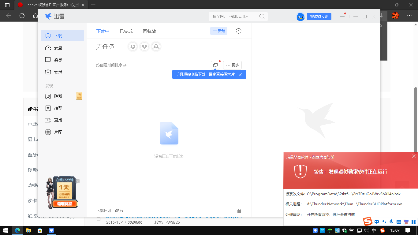 报勒索是因为迅雷安装过程中动了诱饵文件,后续会考虑加白处理