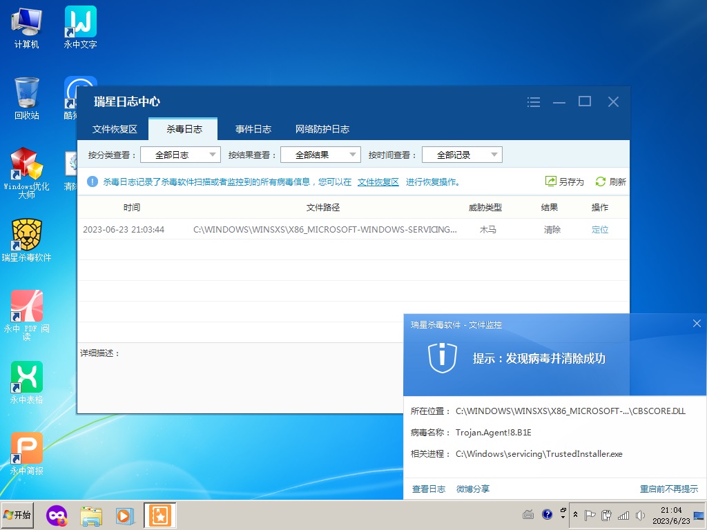 谢谢您的反馈,相关人员已做了处理,现在应该不报了。另外,隔离区恢复文件时恢复失败,怀疑是因为系统文件由于权限不够导致的,可以恢复到桌面再拷贝进去试试。