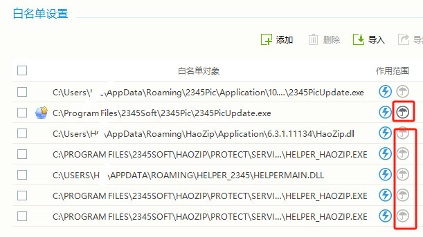 v17版的白名单添加文件夹后貌似只能用于扫描.监控那个伞是黑色的,点不开,貌似无效哦?