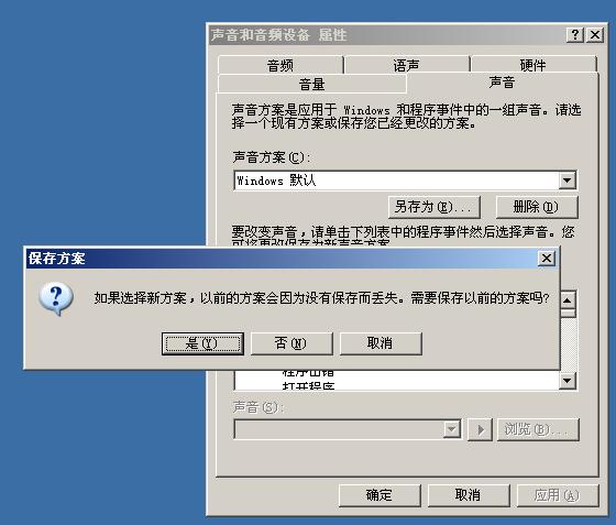 在控制面板--声音和声音设备--声音,声音方案里选一个,再点应用--确定,即可。