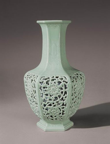 NO.1:清乾隆御制珐琅彩“古月轩”题诗花石锦鸡图双耳瓶(器高16.5厘米,香港苏富比2005秋拍,成交价:人民币122,408,800元)