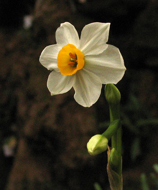 希腊神话传说,水仙原是个美男子,他不爱任何一个少女,而有一次,他在一山泉饮水,见到水中自己的影子时,便对自己发生了爱情。当他扑向水中拥抱自己影子时,灵魂便与肉体分离,化为一株漂亮的水仙.....
