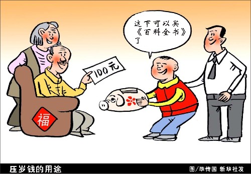 现在长辈为晚辈分送压岁钱的习俗仍然盛行,压岁饯的数额从几十到几百不等,这些压岁钱多被孩子们用来购买图书和学习用品,新的时尚为压岁钱赋予了新的内容。