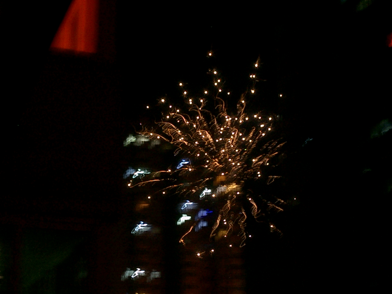 没有用三脚架,手拿相机,用了烟火模式
