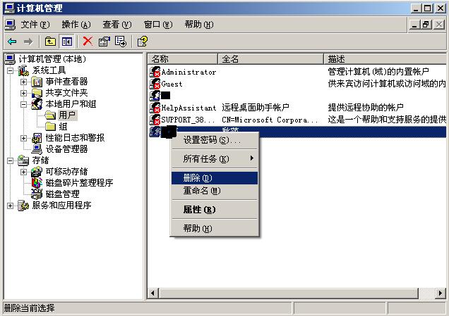 XP用户帐户怎么删除啊??我找了半天也没有找到删除的地方........