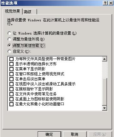 右键点击“我的电脑”,选择“属性”,再选“高级”,再点“性能”边的“设置”,然后再照楼上亲8楼的图勾选(个人建议直接选择“让windows选择计算机的最佳设置”或“调整为最佳外观”)