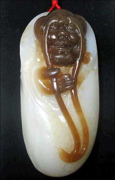 新疆和田玉羊脂白玉 大手玩件红眉罗汉