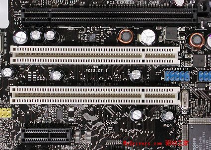 下图从上到下依次为:PCI Express x16,两个PCI,PCI Express x1