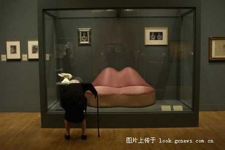 费城调查者的美国摄影师迈克尔-威尔茨的参赛作品“萨尔瓦多-达利作品前的老妇” 获艺术类单幅三等奖,图为:萨尔瓦多-达利作品前的老妇。
