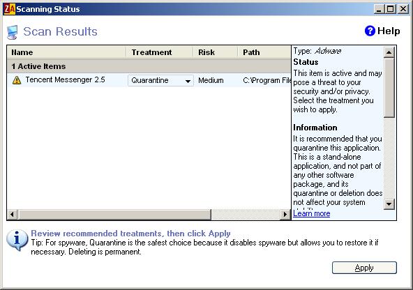 【天天泡泡的贴子】我用SpyCatcher Express,直接就把整个QQ作为间谍软件来识别。