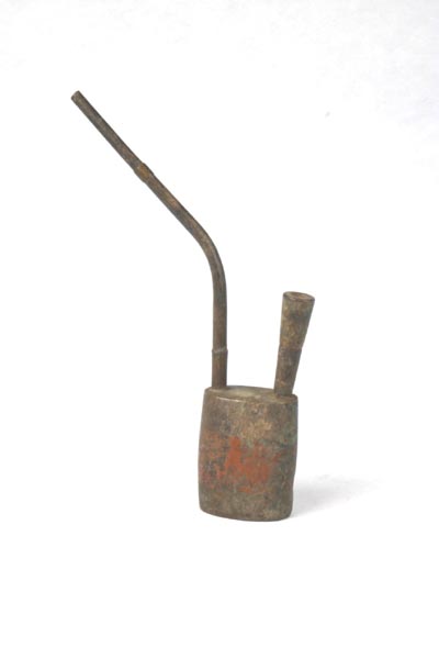 水烟袋多以白铜制作,亦有用青铜、黄铜或锡制作的。富家用水烟袋较为讲究,在烟嘴部分有以翡翠、玛瑙的,连接部分则用金、银镶嵌。在农家,水烟袋有以竹制者,往往也别具风格。