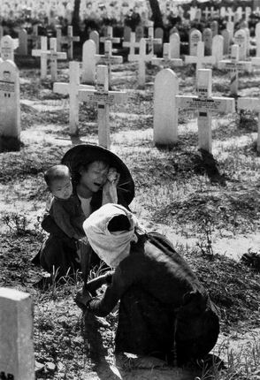 1954年5月24曰,在河内的南部,越南人正在哀悼她们死于与法军作战中的亲人。这张照片是罗伯特 卡帕死前拍摄的最后一卷照片中 的一张,在同—天摄影者触雷身亡。
