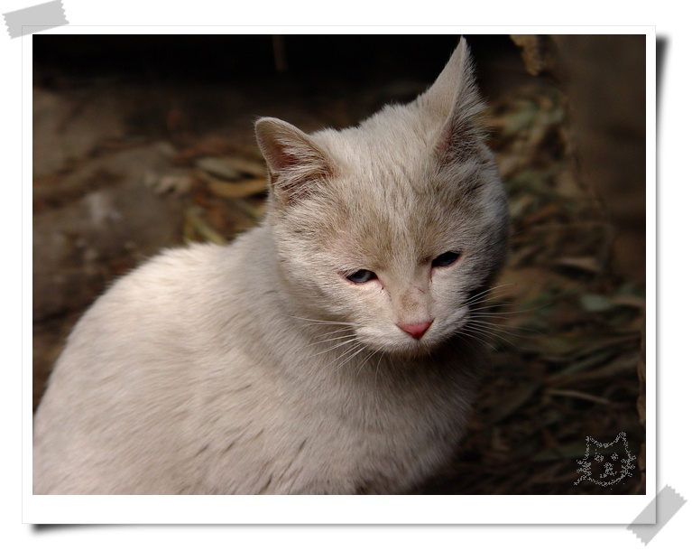 一只小小的白猫,身上只略微有些脏,有一点点羸弱的样子