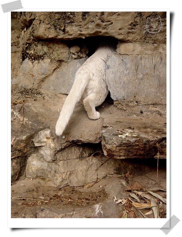 开始的时候它正和别人玩儿着,见到我,居然就登登登地跑过来了,轻轻地喵喵地叫,我身上没带任何零食,矿泉水也没有,抱歉地想走开,它却不远不近地跟着...后来是我跟着它,它一会儿侧卧在地上象是要求我给它拍照,一会儿又跑到水塘边去喝水,最后还带我去了它的家.