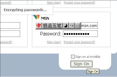 以MSN为例。输入登陆名与密码后,按下“Sign On ”
