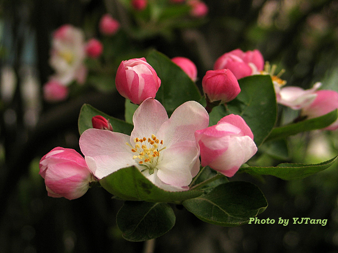 标题是陆游《海棠歌》里的诗句:“何从乞得不死方?更看千年未为足。”初次见到这种花儿就被它的艳丽惊呆了,拍了一大堆照片,久久不愿离去,真的看不够呵!回来网上查询才认识了古已有之名贵的海棠花。