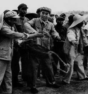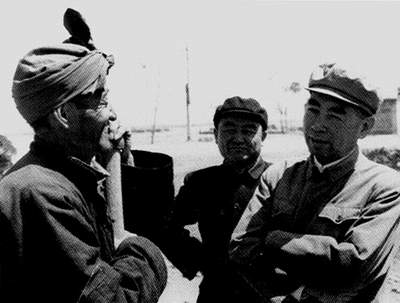 国民经济困难时,周恩来在河北武安县伯延公社向老农了解情况。
