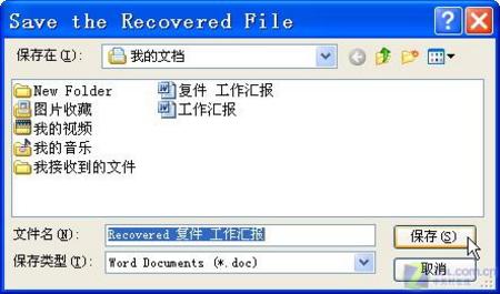 该插件安装较简单,在安装前会询问需安装的软件(如Word、Excel和PowerPoint等),在列表框中选择相应的复选框即可设置,随后单击“Next”按钮即可安装。安装完成后,只要单击“开始”→“程序”→OfficeRecovery,然后单击相应的项目,单击Recover按钮,再打开如图9所示窗口,选择欲修复的文件。该软件即会对打开的文件进行修复,最后弹出如图10所示窗口保存修复后的文件。