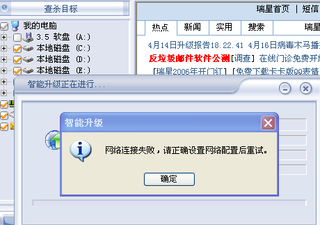 我的瑞星不能升级说网络错误 单实际是好的 可以上网 设置也对的
