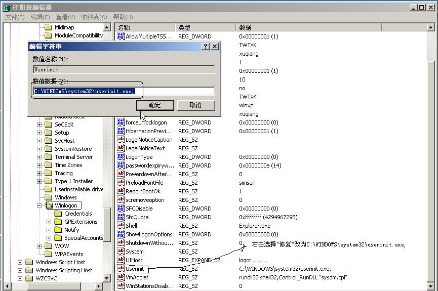 我觉得有改过来的必要,并搜索一下C盘,看看到底有多少个文件是userinit.exe