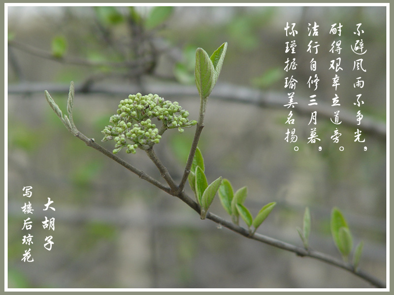 可是琼花并不在意这些。她依旧只在冬天里蓄积着自己的营养,春天里萌发出自己的新芽,仲春时节开放出洁白的花来。秋霜里,她还要将自己的果献给大家,尽管人们并不在意那小小的无法食用的果实。