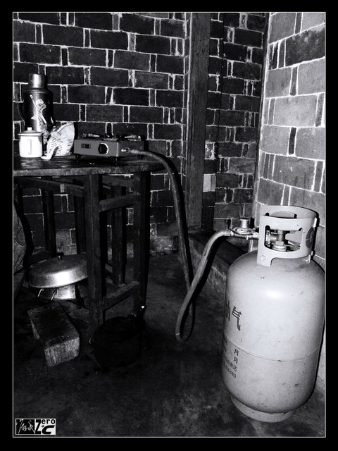 殷世蓉(91岁)老人家中最值钱的物品——液化气瓶,除此外就是那张破旧的四方桌了