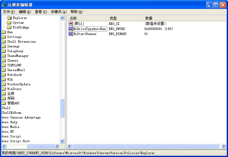将以上的内容复制到记事本中保存为例如:为“Auto.reg”文件名的文件,再找到它双击它,再重新启动电脑一次看看是否正常?如果实在不行,如能信得过在QQ上与我联系,远程协助一下看看是否能帮上忙。