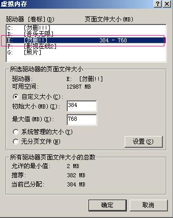 刚刚楼主Q我问如何移动虚拟内存到别的盘中,我将图发上来,照图所示操作即可,另外还要将C盘下点无分页条件,最后一定要点设置后确定然后重启,这样后大大节约系统盘使用空间
