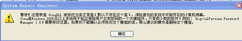 出现这个提示框估计是D:\WINDOWS\system32\DisLogWin.dll的缘故,可能是你美化了XP后留下的问题