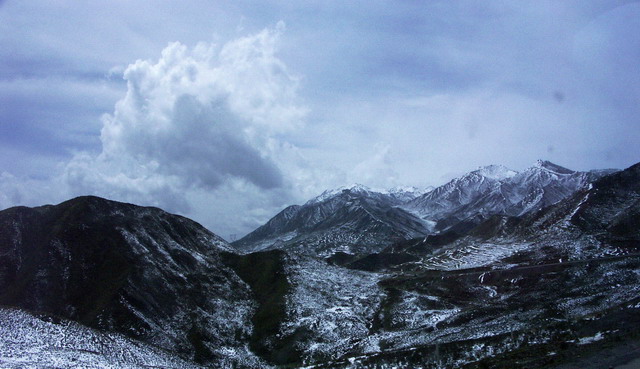 天池的路上,仔细看山腰上的白点,那可是羊群哦~
